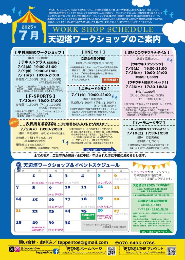 7月のワークショップのお知らせです。ご参加お待ちしてます!